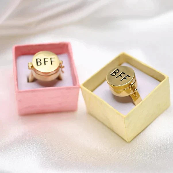Nosso BFF Ring é uma réplica exata da peça favorita dos fãs! Uma ótima maneira de mostrar o quanto você se importa com seu melhor amigo!
