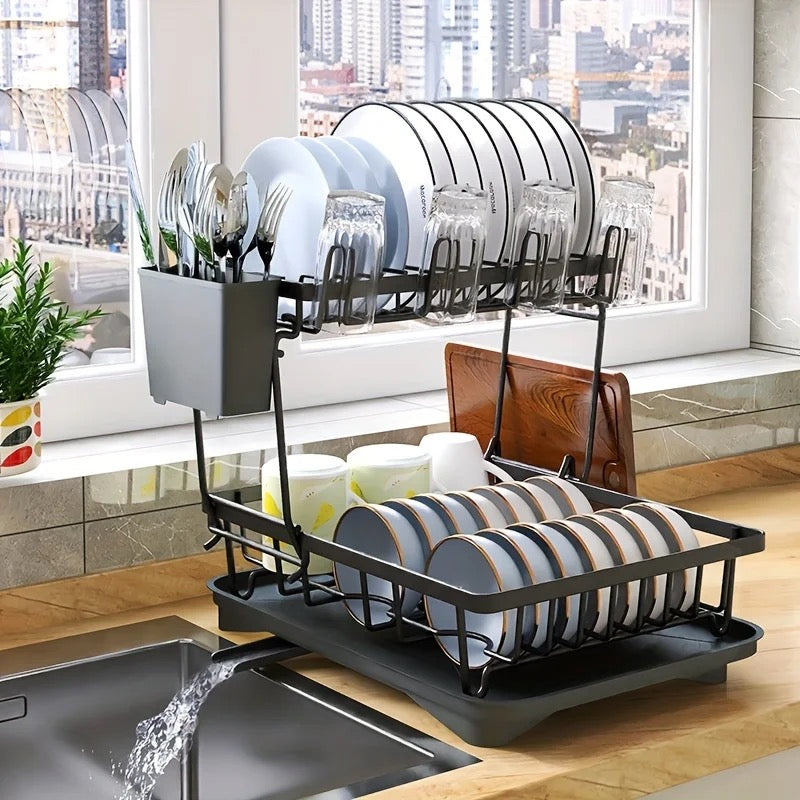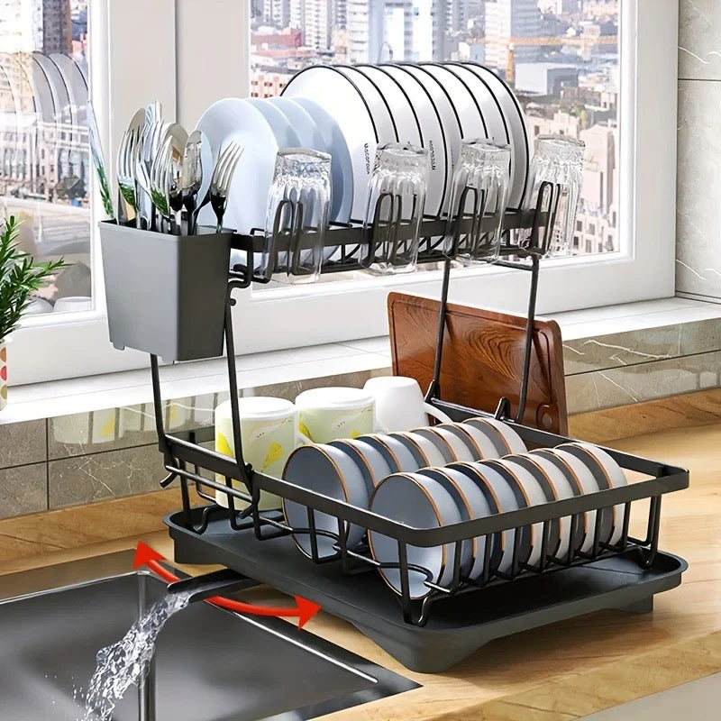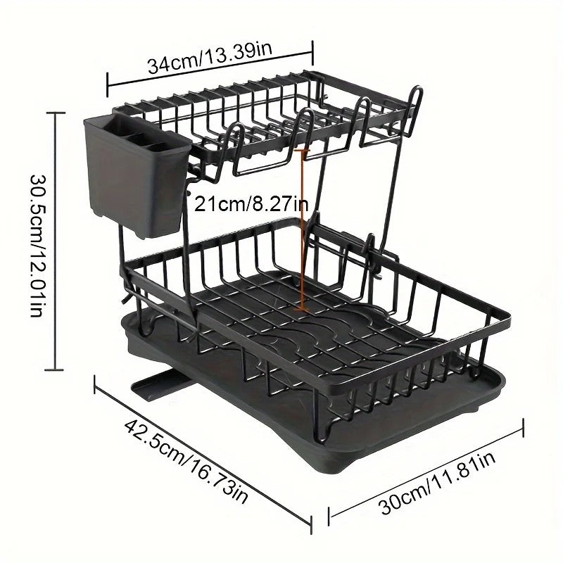 Mantenha sua pia organizada e eficiente com o Escorredor de Louça de 2 Andares. Com um design inteligente que oferece ampla capacidade de armazenamento e um sistema de drenagem eficaz, este escorredor seca suas louças rapidamente e previne o acúmulo de água. Feito de aço carbono anti-ferrugem, é robusto, durável e fácil de manter.